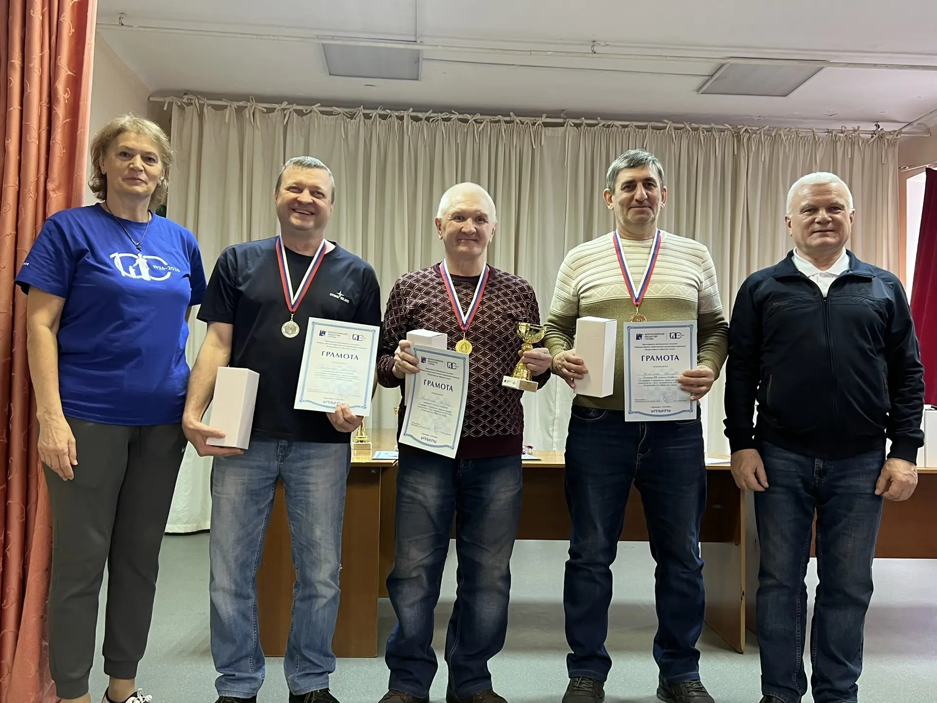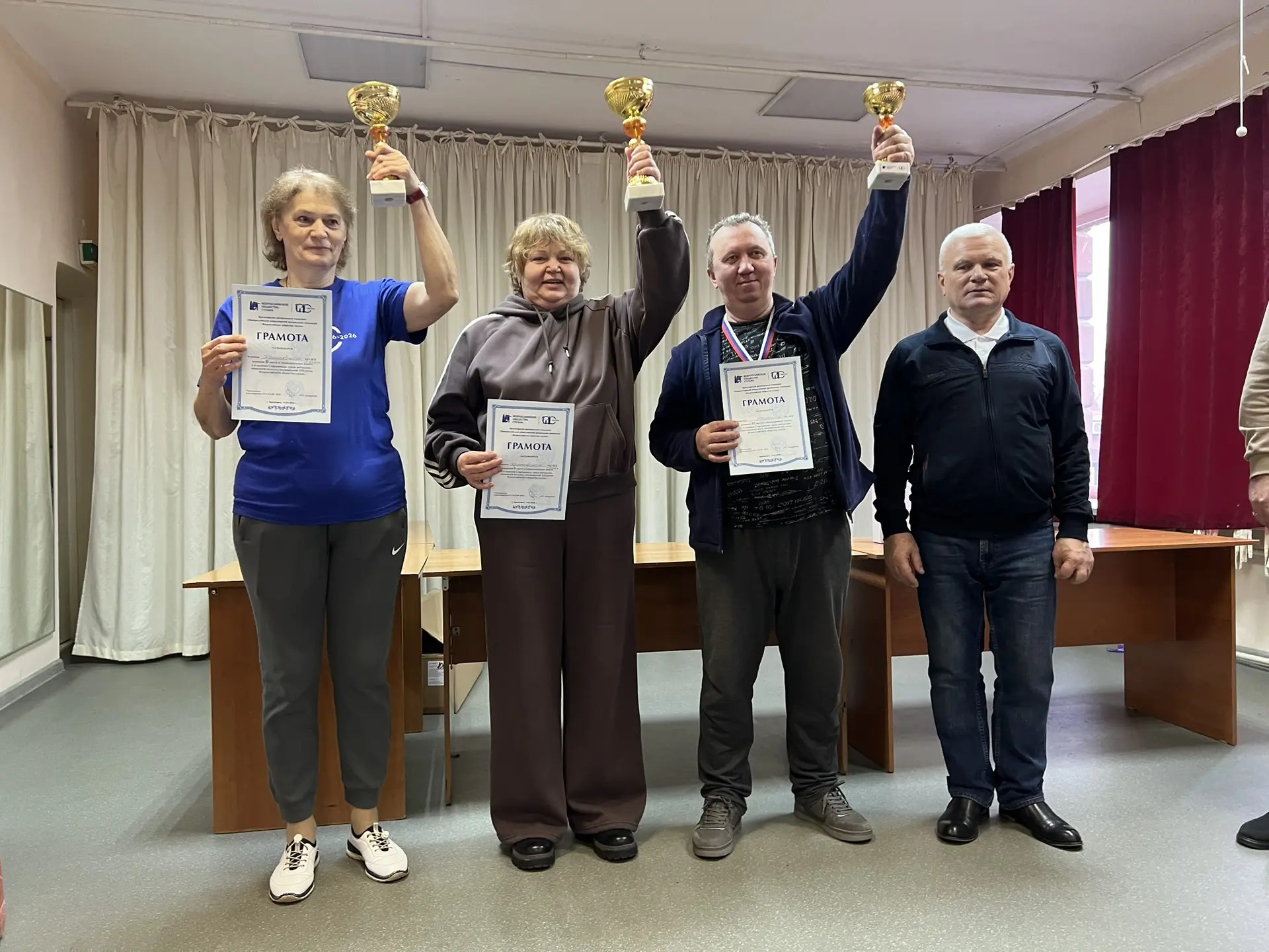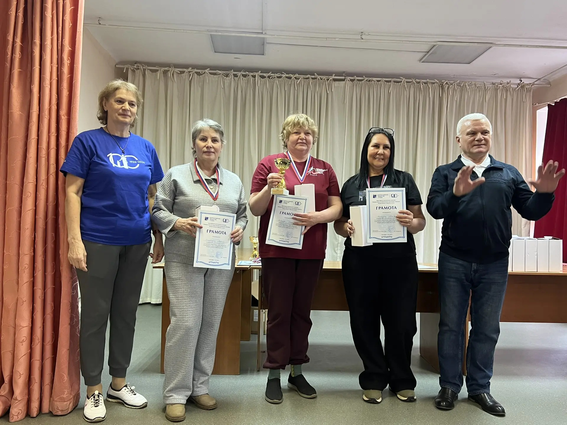 14 марта 2026 г. в г. Красноярске, в помещении ВОГ, при финансовой поддержке министерства социальной политики края, состоялась 2-я краевая Спартакиада ветеранов ВОГ, посвященная 100-летию Всероссийского общества глухих. В Спартакиаде приняли участие 8 команд (60 чел.) из 7 МО Красноярского РО ВОГ. Соревнования проводились по следующим видам спорта: бильярд, дартс, н/теннис, шахматы, шашки. Победители награждены кубками, медалями и грамотами. Всем участникам вручены памятные призы с эмблемой 100 лет ВОГ. Победители наших соревнований будут участвовать в региональной Спартакиаде, 02 октября, в г. Кемерово.
