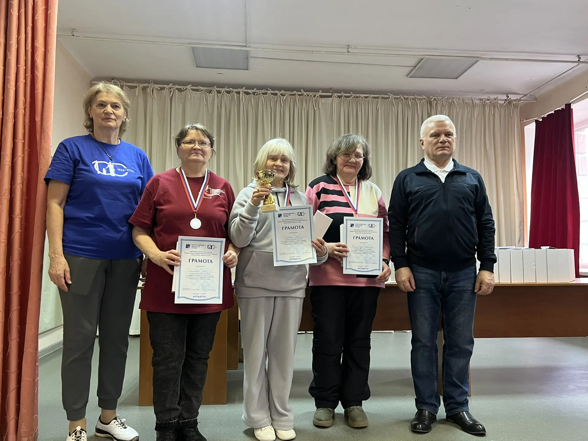 14 марта 2026 г. в г. Красноярске, в помещении ВОГ, при финансовой поддержке министерства социальной политики края, состоялась 2-я краевая Спартакиада ветеранов ВОГ, посвященная 100-летию Всероссийского общества глухих. В Спартакиаде приняли участие 8 команд (60 чел.) из 7 МО Красноярского РО ВОГ. Соревнования проводились по следующим видам спорта: бильярд, дартс, н/теннис, шахматы, шашки. Победители награждены кубками, медалями и грамотами. Всем участникам вручены памятные призы с эмблемой 100 лет ВОГ. Победители наших соревнований будут участвовать в региональной Спартакиаде, 02 октября, в г. Кемерово.